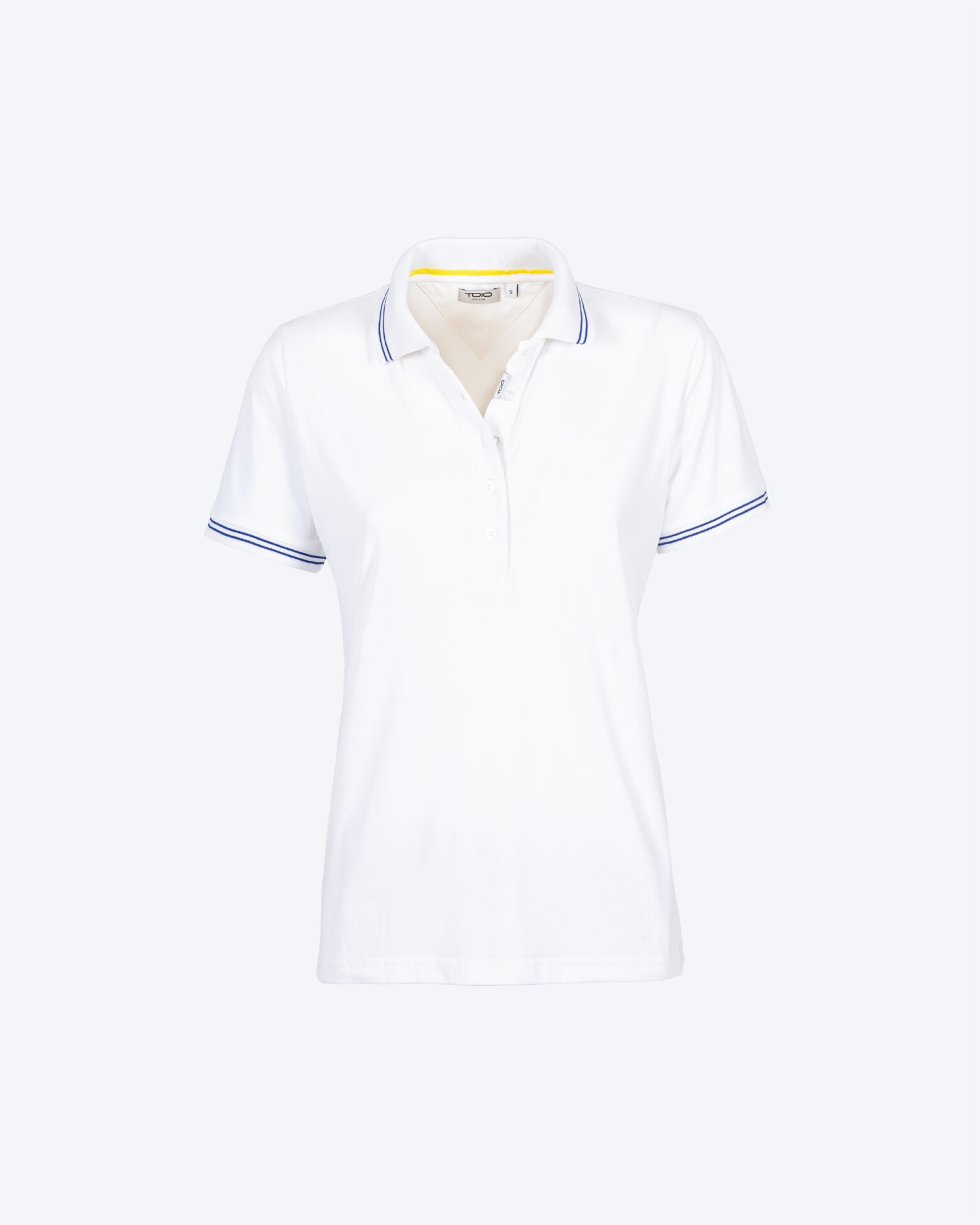Short sleeve ultra light polo-shirt with rib at collar and at sleeve edge.