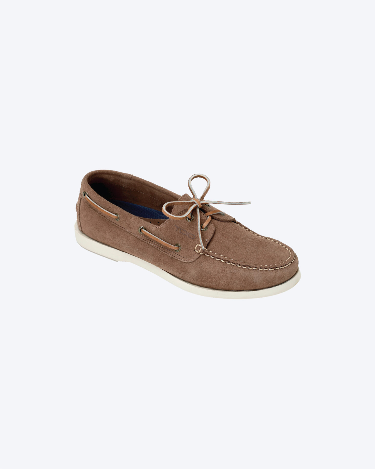 Suede boat shoe with laces and eyelets.