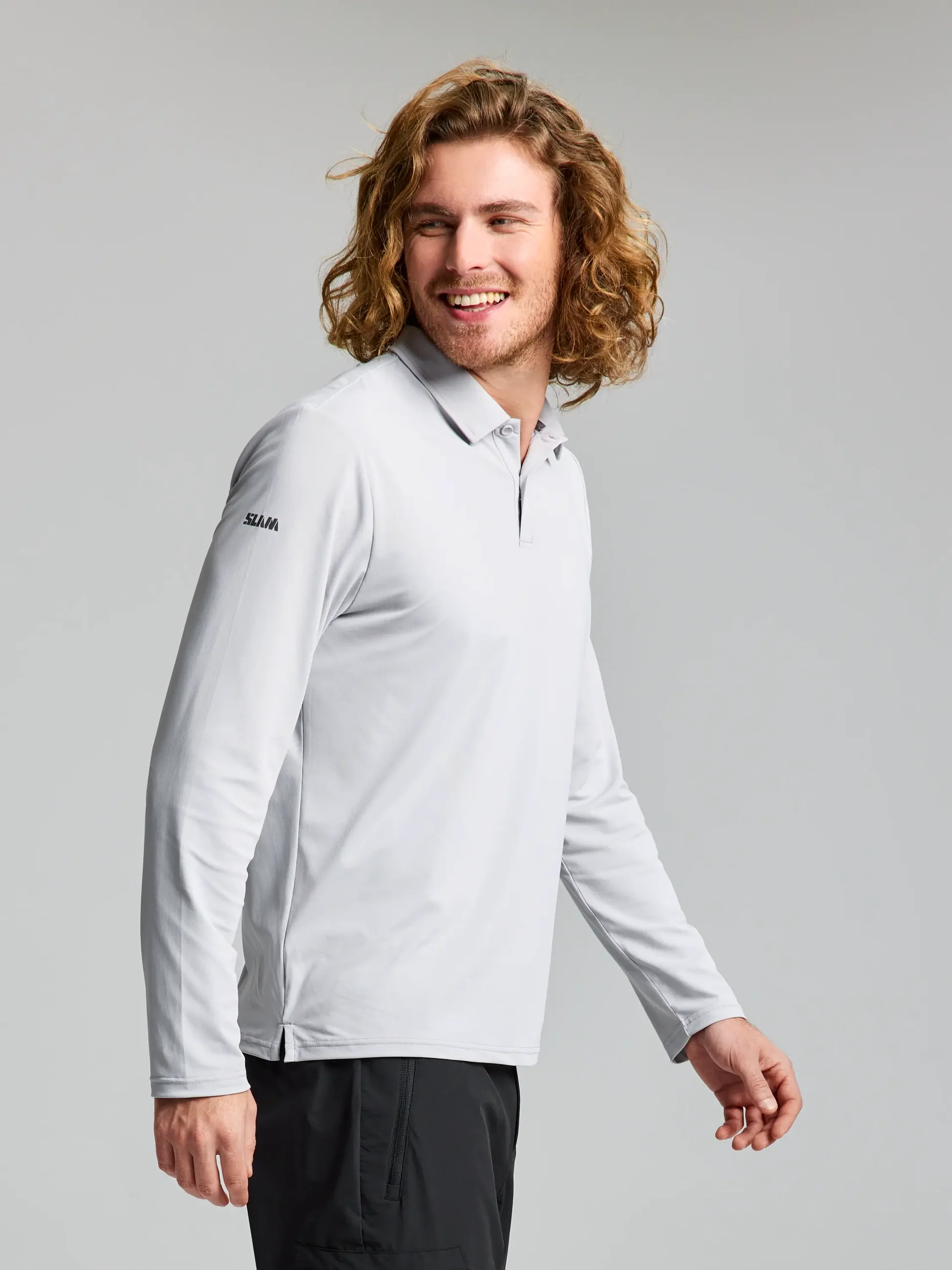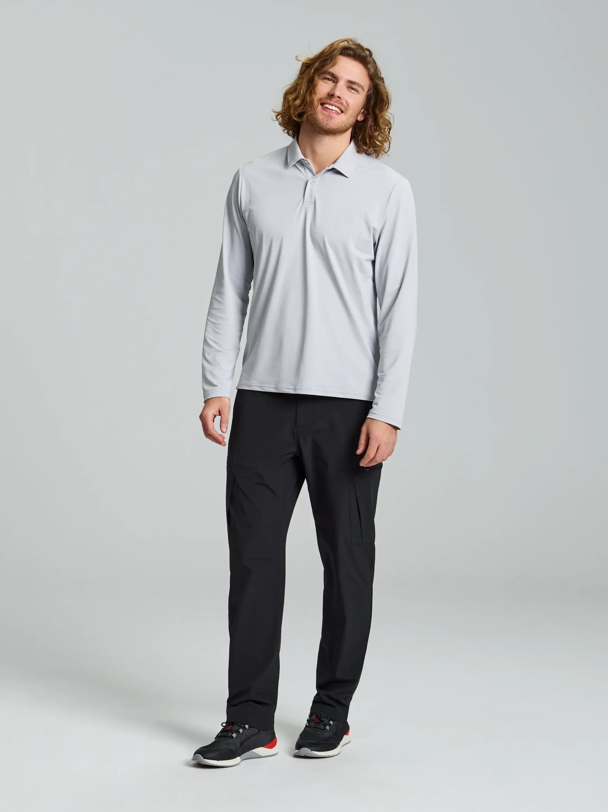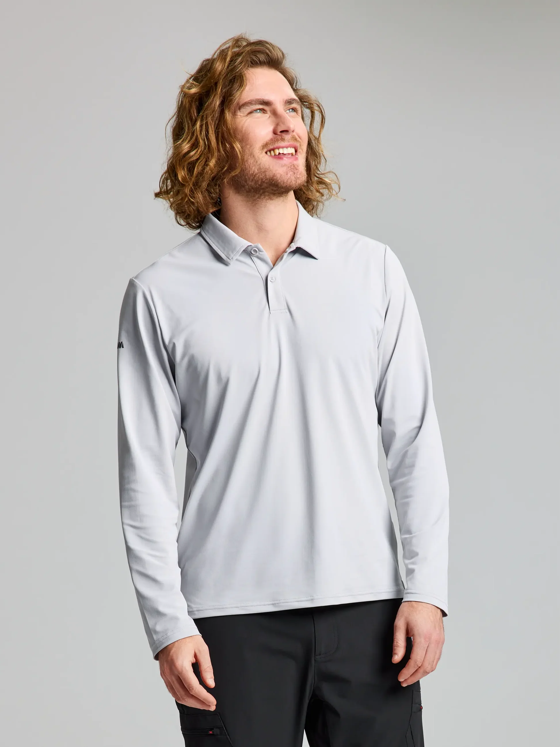 Men’s long-sleeved polo shirt in stretch techno pique, antibacterial with UVP 50+ treatment. The Active Long Sleeves Techno Piqué Polo is an easy-care polo shirt to have for every sports weekend