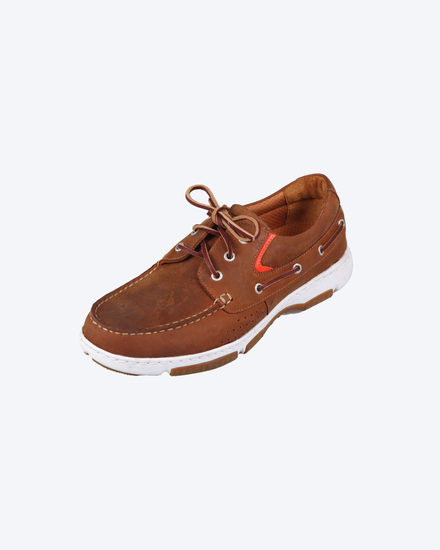 Tehnička brodska cipela od brušene kože (pruža udobnost na kopnu i performanse na brodu). Kožne pertle i tehnički đon koji ne ostavlja tragove i ne kliza od EVA/gume sa dubljim kanalima šare, pruža odlično prianjanje na palubi, uz uklonjivi uložak (za lakše sušenje).