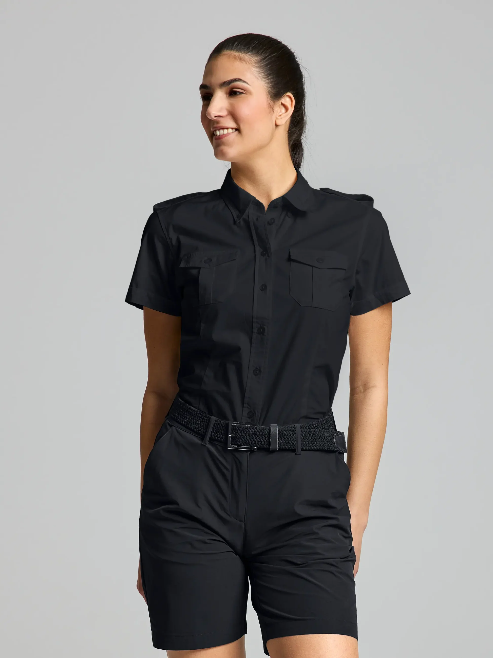 Ženska košulja kratkih rukava od rastezljivog pamučnog poplina